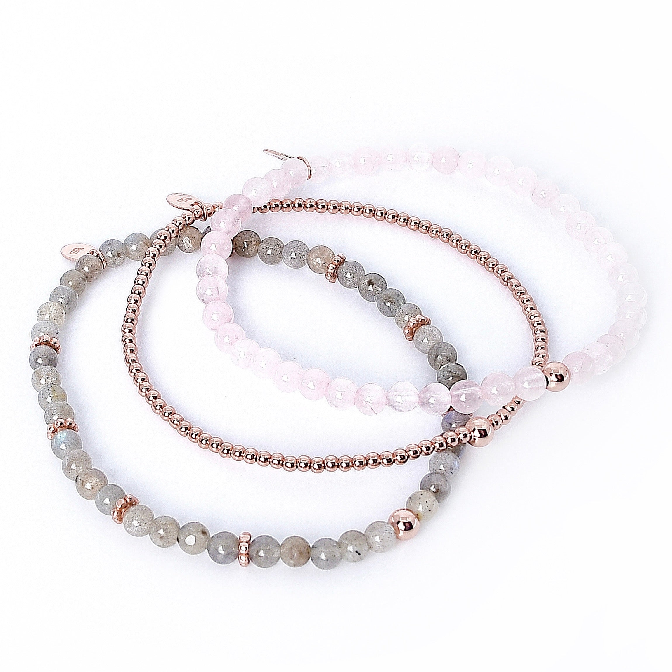 Damen Armband 3er Kombination – Edelsteine & rosévergoldetes 925 Silber