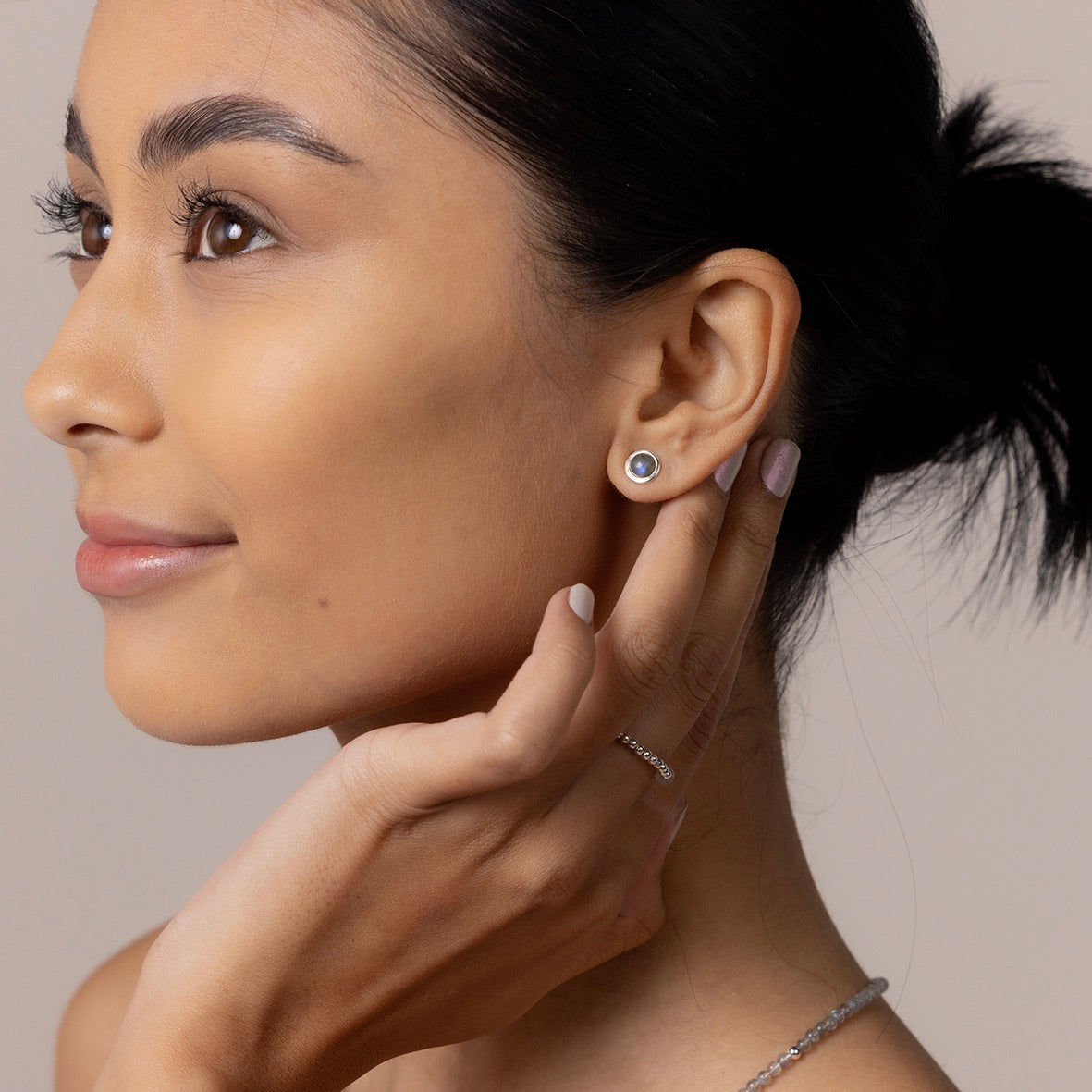Diese zarten Ohrstecker sind mit Labradorit-Steinen besetzt, die mit ihrem geheimnisvollen Schimmer faszinieren. Der Labradorit fängt das Licht in sanften, schimmernden Tönen ein und verleiht den Ohrringen eine magische Ausstrahlung.