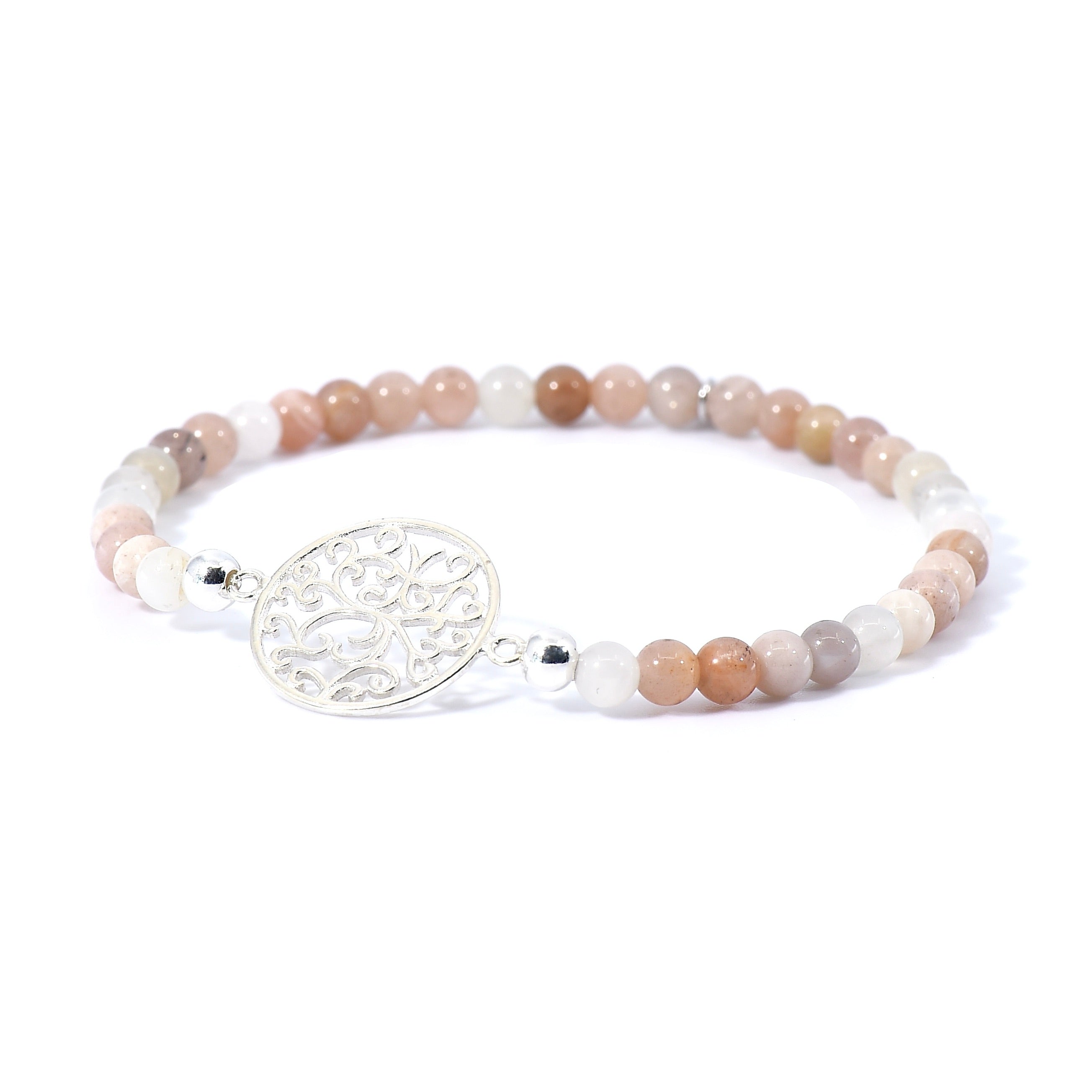 Damen Armband mit Zimt Mondsteinen, Sonnensteinen & Silber Emblem